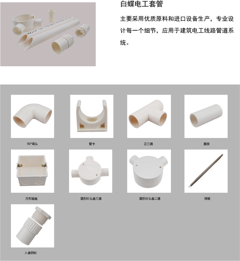 主要采用优质原料和进口设备生产,专业设计每一个细节,应用于建筑电工线路管道系统。