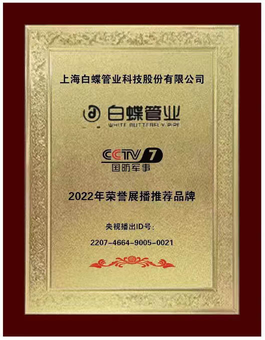 上海白蝶登陆央视CCTV,彰显管道行业标杆力量