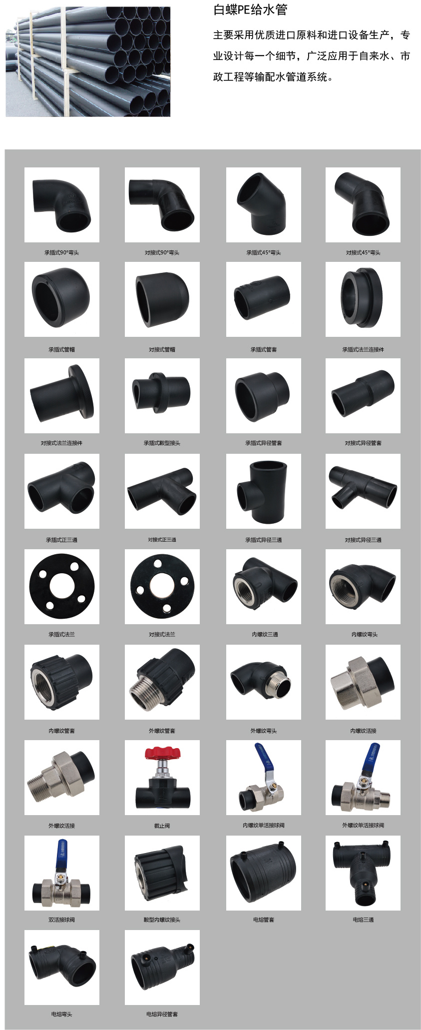主要采用优质进口原料和进口设备生产,专业设计每一个细节,广泛应用于自来水、市政工程等输配水管道系统。