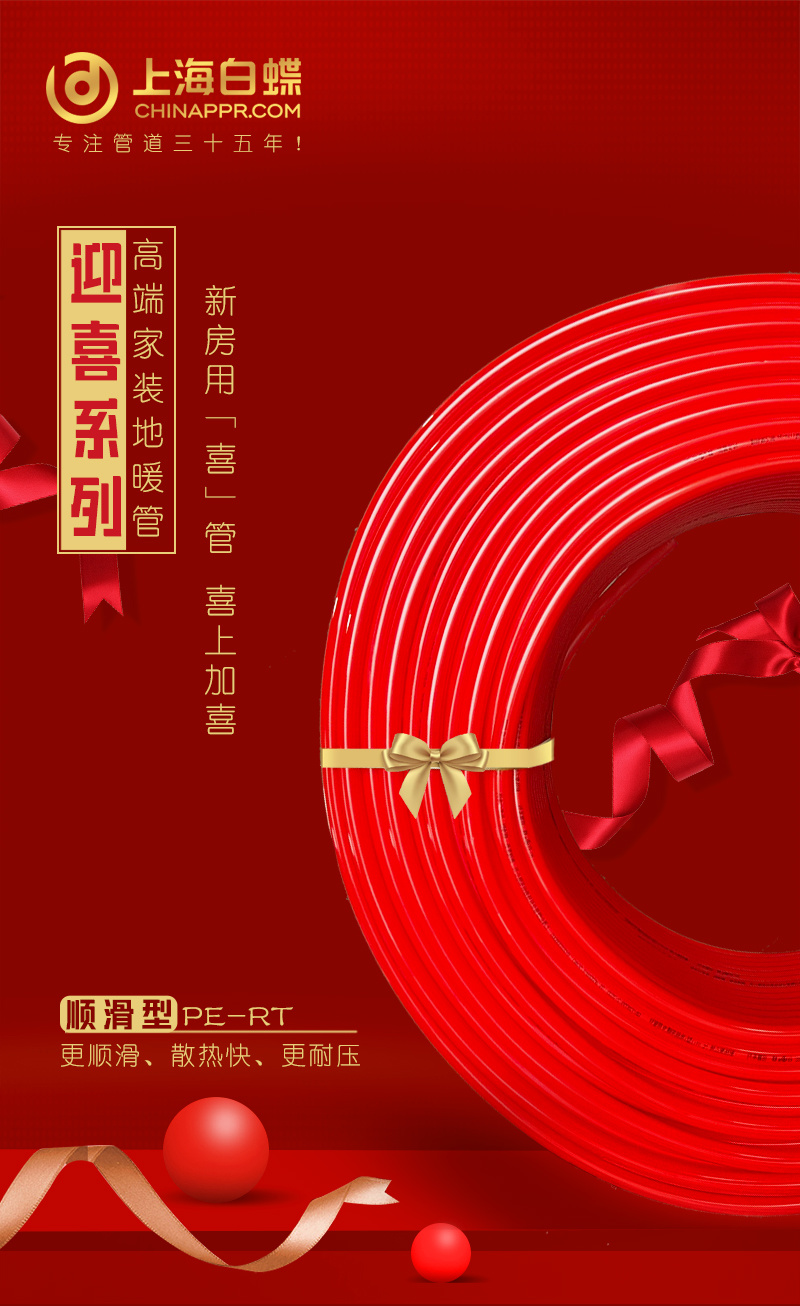 上海白蝶管业隆重推出“喜”管“迎喜”系列顺滑型高端家装地暖管。