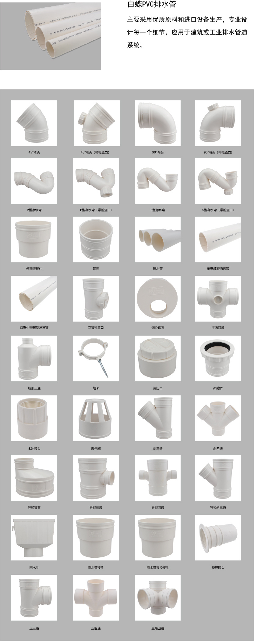 主要采用优质原料和进口设备生产,专业设计每一个细节,应用于建筑或工业排水管道系统。