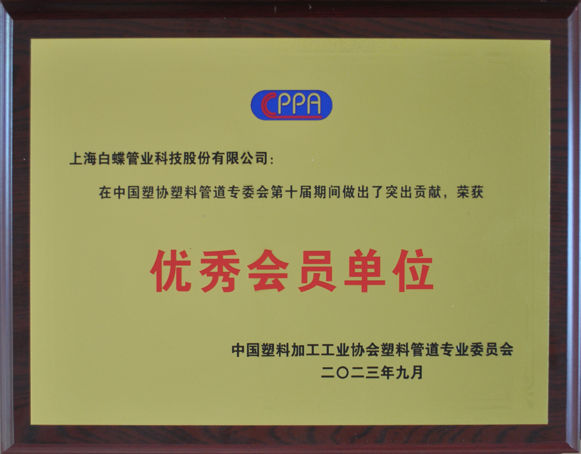 上海白蝶,中国塑协塑料管道专委会优秀会员单位