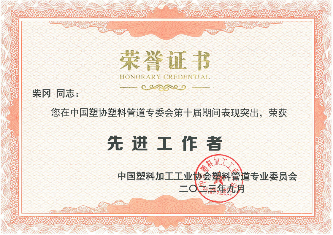 与此同时,上海白蝶管业科技股份有限公司常务副总经理/总工程师柴冈,荣获中国塑协塑料管道专委会第十届先进工作者。